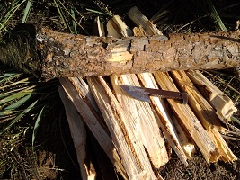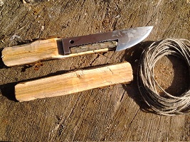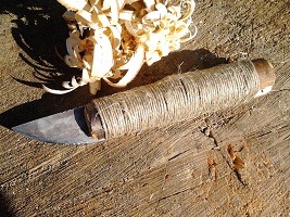 krzemienny jako forma prymitywnego noża, używanego przez dawnego człowieka. Następnie osadzenie HNK - AB